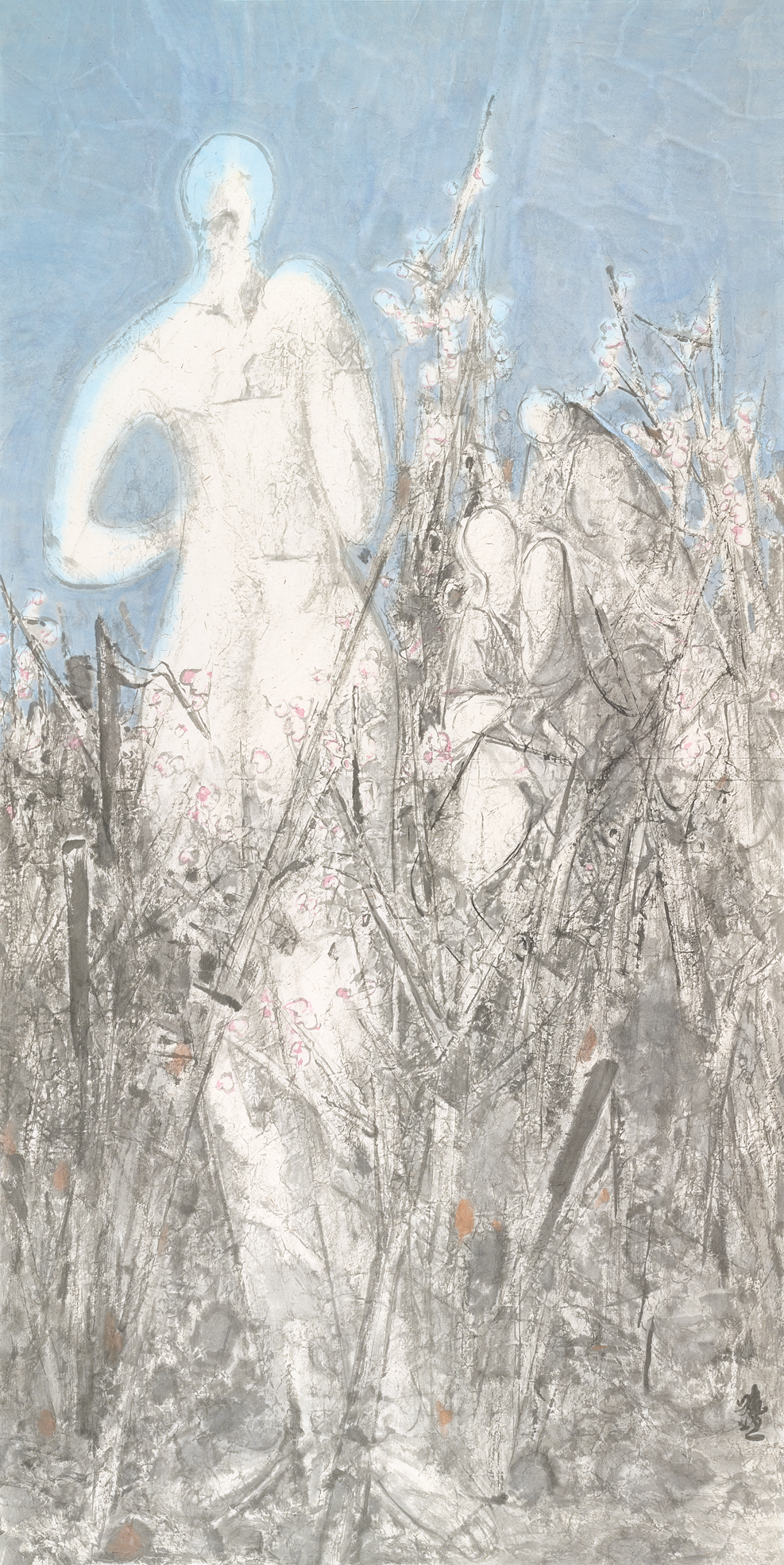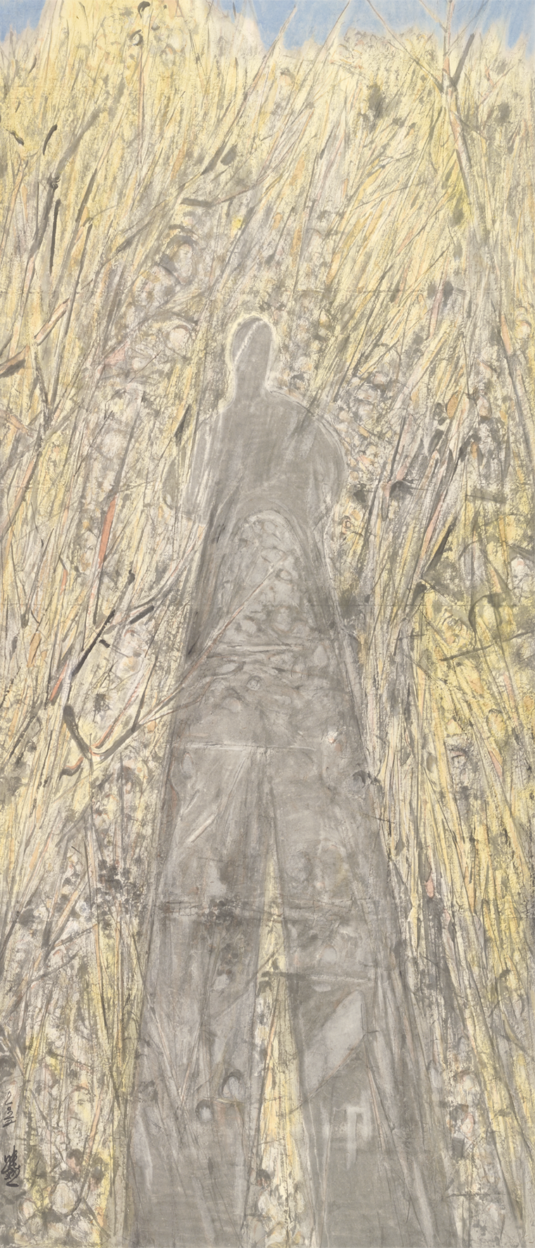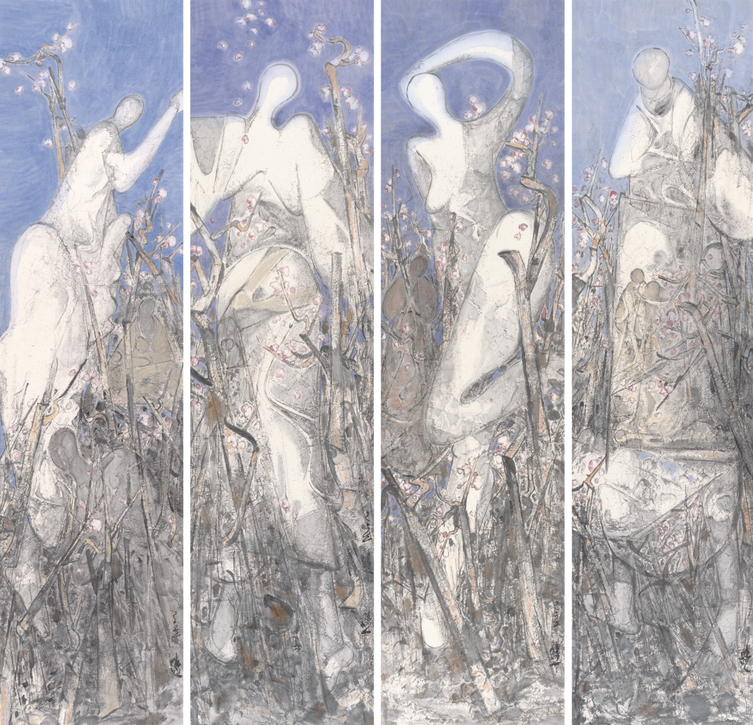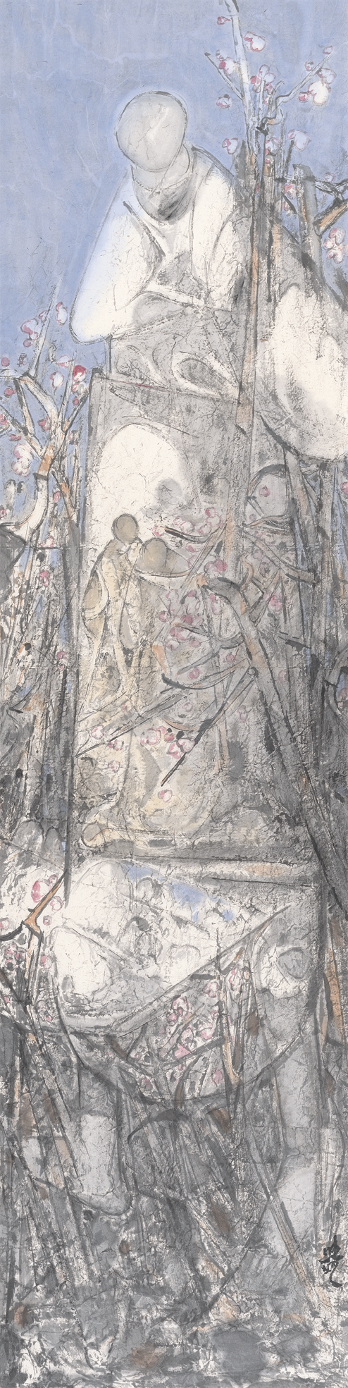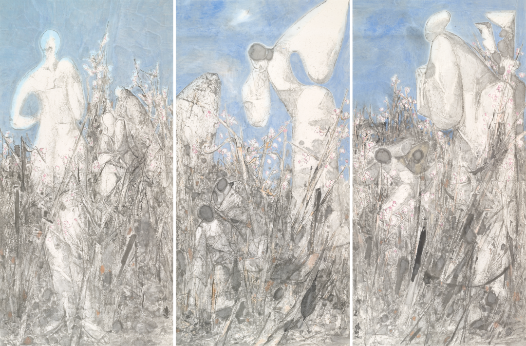 李晓柱的艺术,既蕴含着中国艺术家身份的独有烙印,也呈现出艺术在当下世界中所应蕴含的初始意义—诚实地、坦率地、质朴地展露出内在心灵的风景。从最初崭露头角的《白洋淀的船》《大秋》《欢乐的果园》,到四五十岁《桃花度》的风格转型,再到《又见桃花》,一幅幅作品的展开仿佛是一部心灵日记,让人进入到艺术家的内心深处,去阅读他的喜怒哀乐与困惑彷徨。幸运的是,这些感受不仅仅属于他个人,也属于这一代中国人。作为六零后艺术家,正是中国改革开放融入世界的见证者、参与者、受益者,李晓柱不断递进的人生经历与艺术进程,因此具有了大历史当中的典型性,他将个体的境遇转换为一代人的精神境遇,成为当代中国人从乡村到城市、从传统到当代、从本土到国际的精神图谱的一个缩影,并由此实现了他中国画艺术创作的当代性转向。